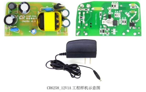 输出的电源适配器样机,控制 IC 采用了本公司的 CR6258。