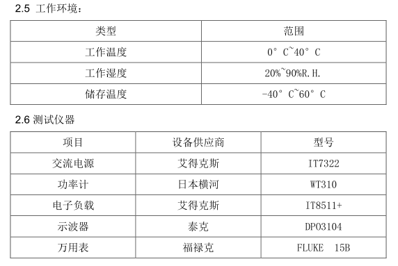 以下表格为工程样机的主要特性,具体测试方法在第4章节中有详细说明