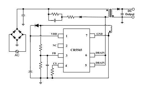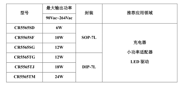CR5565 是一款高性能原边检测控制的 PWM 开关,待机功耗小于 30mW。CR5565 内部采用了多模式控